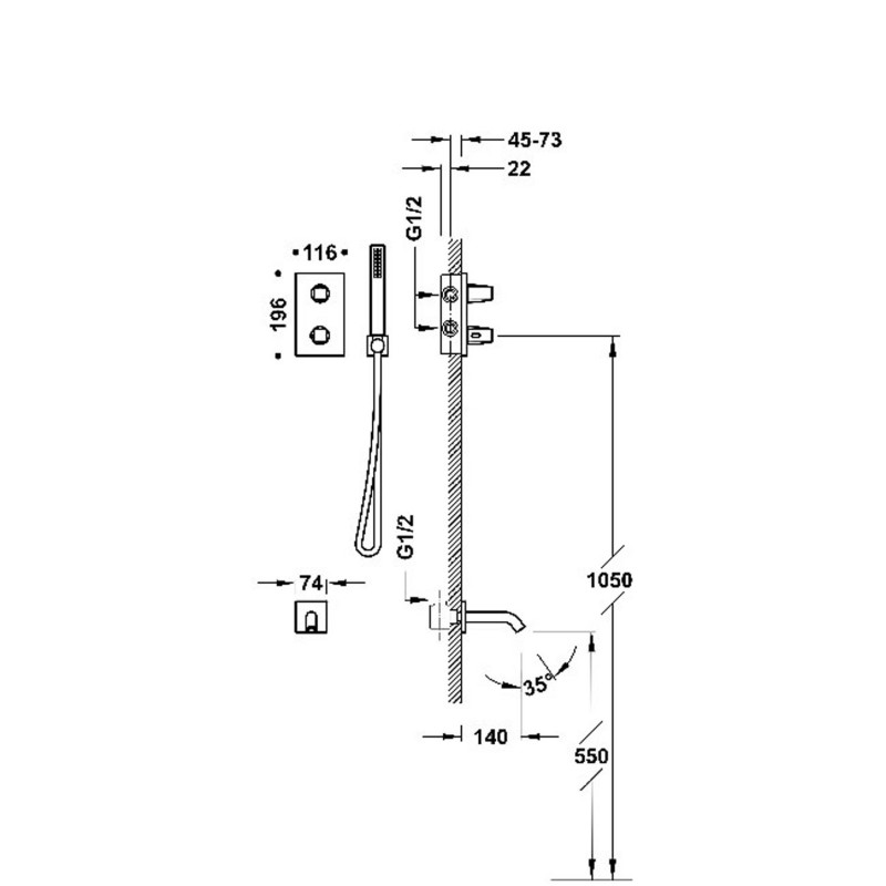 - термостатичний змішувач прихованого монтажу для ванни та душу