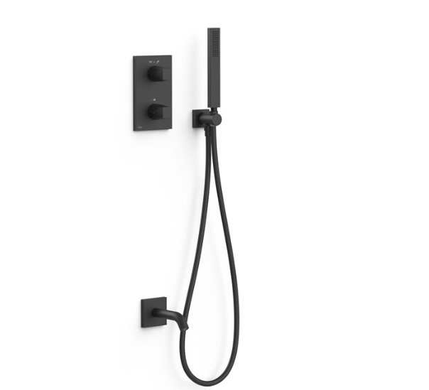 Термостат для ванної Tres Therm-Box на 2 споживача з душовим гарнітуром матовий чорний 21125007NM