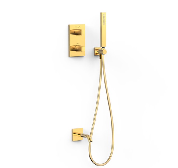 Термостат для ванної Tres Therm-Box на 2 споживача з душовим гарнітуром золото 21125007OR