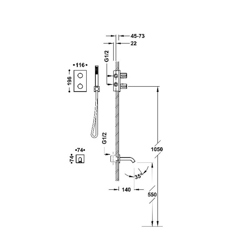 - термостатичнийзмішувач прихованого монтажу для ванни та душу