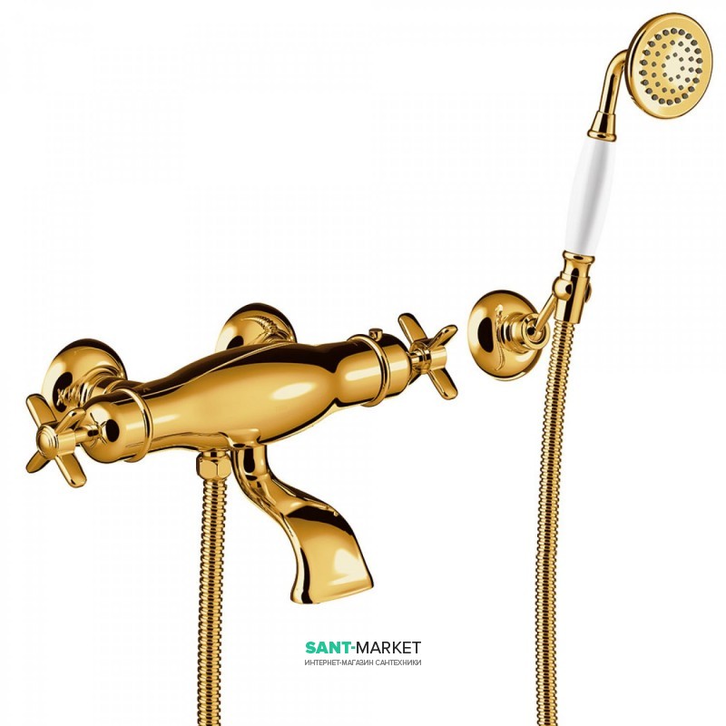 Термостат для ванної Tres Tres-Clasic двовентильний з ручним душем золото 24217409OR