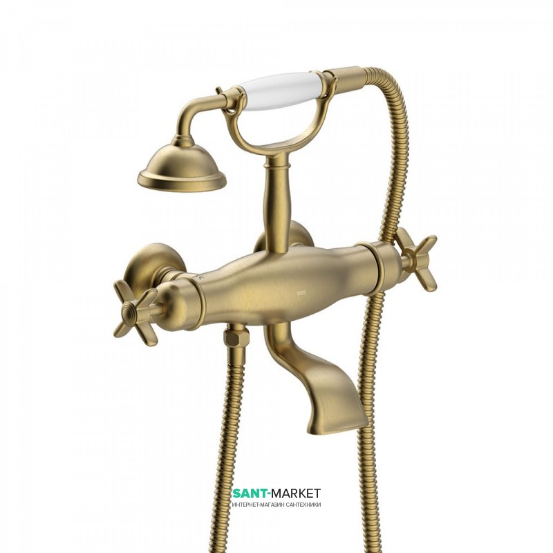 Термостат для ванної Tres Tres-Clasic двовентильний з ручним душем і кронштейном зістарена латунь 24217609LV