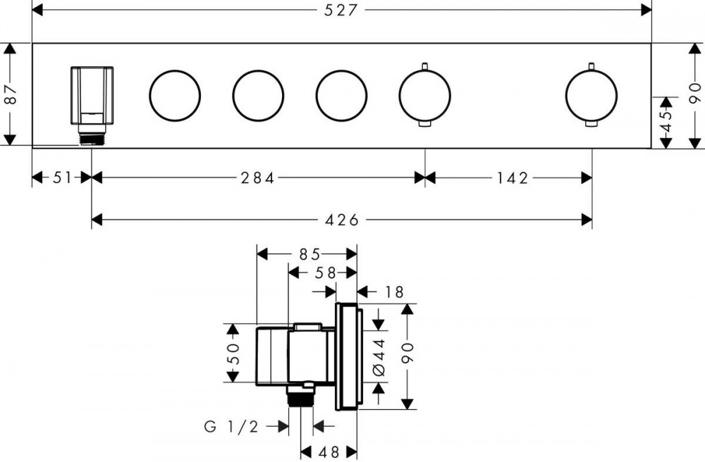 Термостат прихованого монтажу Hansgrohe Axor ShowerSolutions Select 530/90 3 споживача шліфований чорний хром