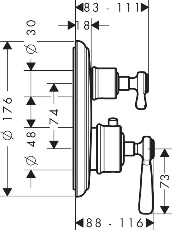 Термостат прихованого монтажу Hansgrohe Axor Montreux із запірним/перемикаючим вентилем шліфований чорний хром 16821340