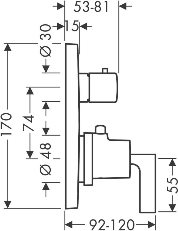 Термостат прихованого монтажу Hansgrohe Axor Citterio із запірним/перемикаючим вентилем шліфований чорний хром 39720340
