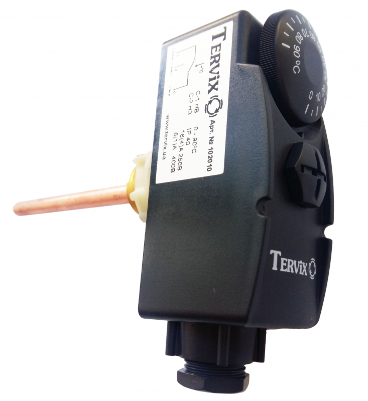 Термостат занурювальний Tervix Pro Line – призначений для автоматичного регулювання котлів, теплових насосів та іншого обладнання (циркуляційний насос, сервопривід, вентилятор тощо).