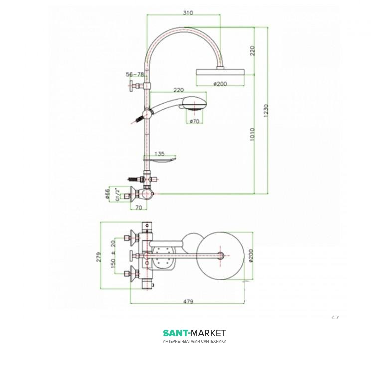 Термостат зі стійкою верхнім і ручним душем X-TERMO хром 31CR0988
