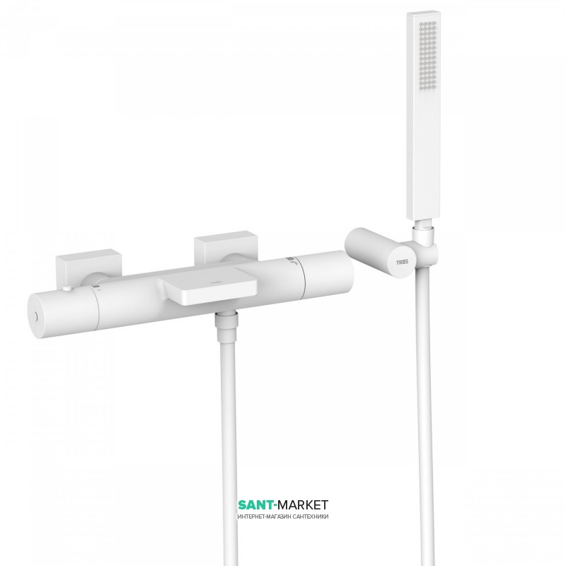 Термостатичний змішувач для ванни Tres Project-Tres двухвентильний з каскадним виливом білий матовий