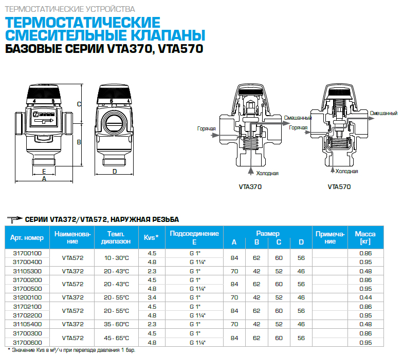 Серії VTA370 та VTA570 — це найкращий вибір для систем опалення та охолодження. Клапани оснащуються функцією захисту від опіків, яка необхідна для збереження, наприклад, труб опалення підлоги і самої підлоги від безконтрольного підвищення температури.