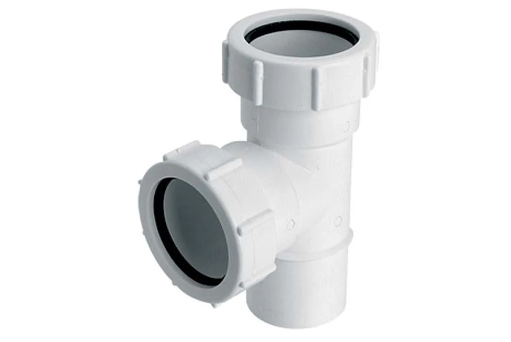 Трійник McAlpine з двома гайками і випуском d50 мм поліпропілен білий