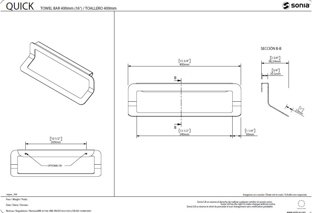 Sonia - аксесуари для ванної кімнати з Іспанії. Тримач для рушників Quick від іспанського концерну Sonia - сучасного дизайну з його вигнутими і звивистими лініями, які передають спокій і безтурботність в його тверезої і позачасовий елегантності. Quick - це колекція аксесуарів, спрямованих на поліпшення функціональності вашої ванної кімнати. Асортимент колекції складається з різних моделей вішалки для рушників, держателя рулону і гачка, які з легкістю прикріплюються до меблів або двері простим і швидким способом. Вони виготовлені з листа алюмінію, покритого епоксидноїсмолою. Ці матеріали забезпечують більшу стійкість до впливу вологи. На всю лінійку аксесуарів Quick від Sonia поширюється обов'язкова 10-річна гарантія виробника.