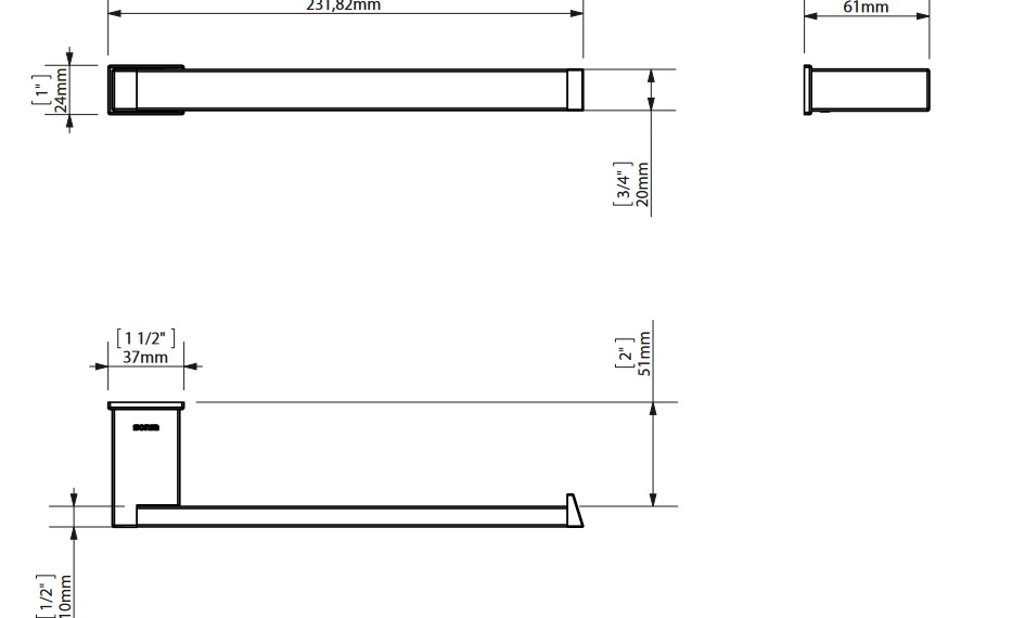 Тримач для рушників Sonia S-Cube 23,2 см латунь білий матовий