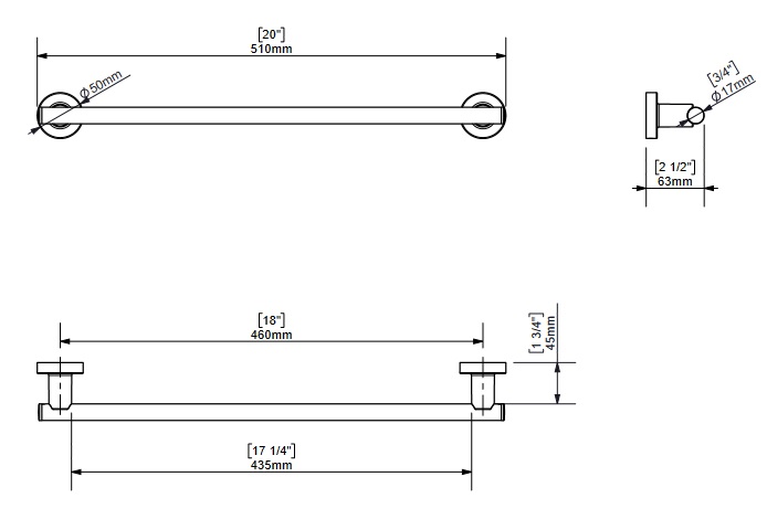 Тримач для рушників Sonia Tecno Project 51 см латунь матовий нікель 119639