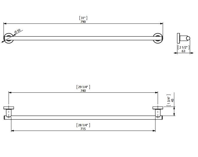 Тримач для рушників Sonia Tecno Project 79 см латунь матовий нікель 186945