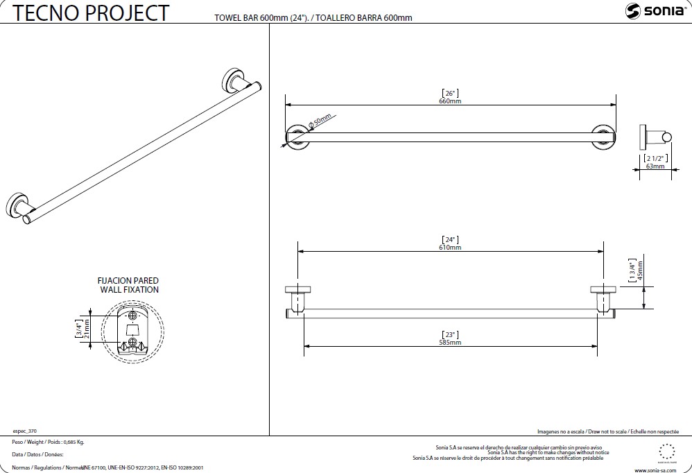Sonia - аксесуари для ванної кімнати з Іспанії. Повністю чорний тримач для рушників Sonia TP з нержавіючої сталі стане родзинкою інтер'єру, зайнявши гідне місце у ванній кімнаті. Виріб випущено іспанським концерном Sonia , який зарекомендував себе як виробник довговічних і оригінальних аксесуарів для ванних кімнат і санвузлів.