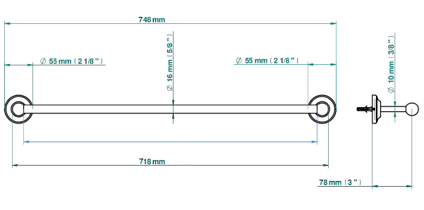Рушникотримувач одинарний - фіксована рейка 700 мм