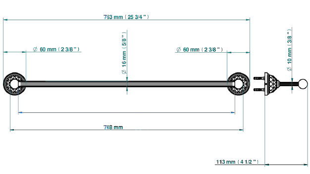 Рушникотримувач одинарний - фіксована рейка 700 мм