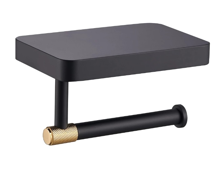 Тримач для туалетного паперу Аквародос Лоренцо 9226 із підставкою для мобільного телефону чорний АР000113378