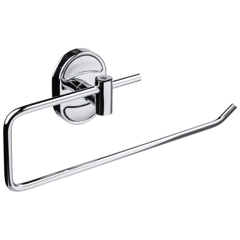 Тримач туалетного паперу KRM Elbe - ACC2903-3 від Kroner виготовлений із міцного хромованого металу, який підходить до всіх аксесуарів для ванної кімнати. Тримач з декорвставки кріпляться до стіни шурупами на потрібну висоту і завдяки вигнутому гаку захищають туалетний папір від падіння. Приховане кріплення дозволяє зберегти обробку ванної кімнати.