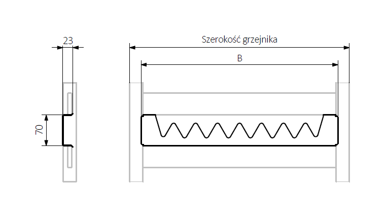 - ширина підбирається виходячи з розмірів сушарки для рушників: 300, 400, 500, 600 мм;