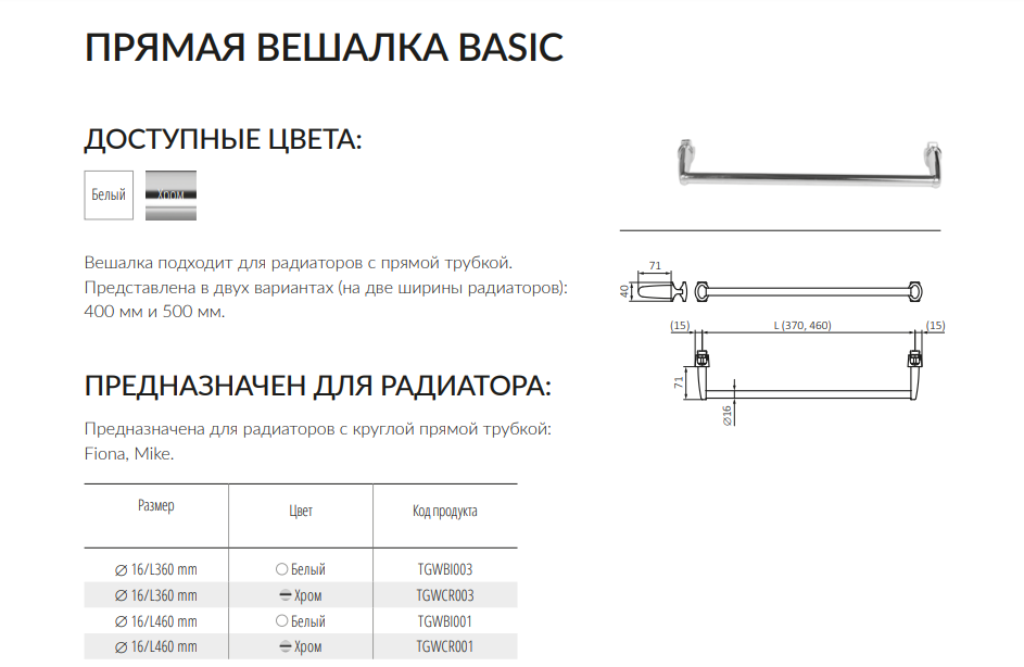 Один із найефектніших власників рушників лінійки компанії Терма. Він стане не просто практичним елементом, а й справжньою окрасою сушки для рушників. Аксесуар підходить для сушки для рушників серії Simple. Короткий прилад, доповнений яскравою і сміливою деталлю, впишеться в будь-яку ванну кімнату. При замовленні можуть бути пофарбовані в будь-який колір на панелі RAL.