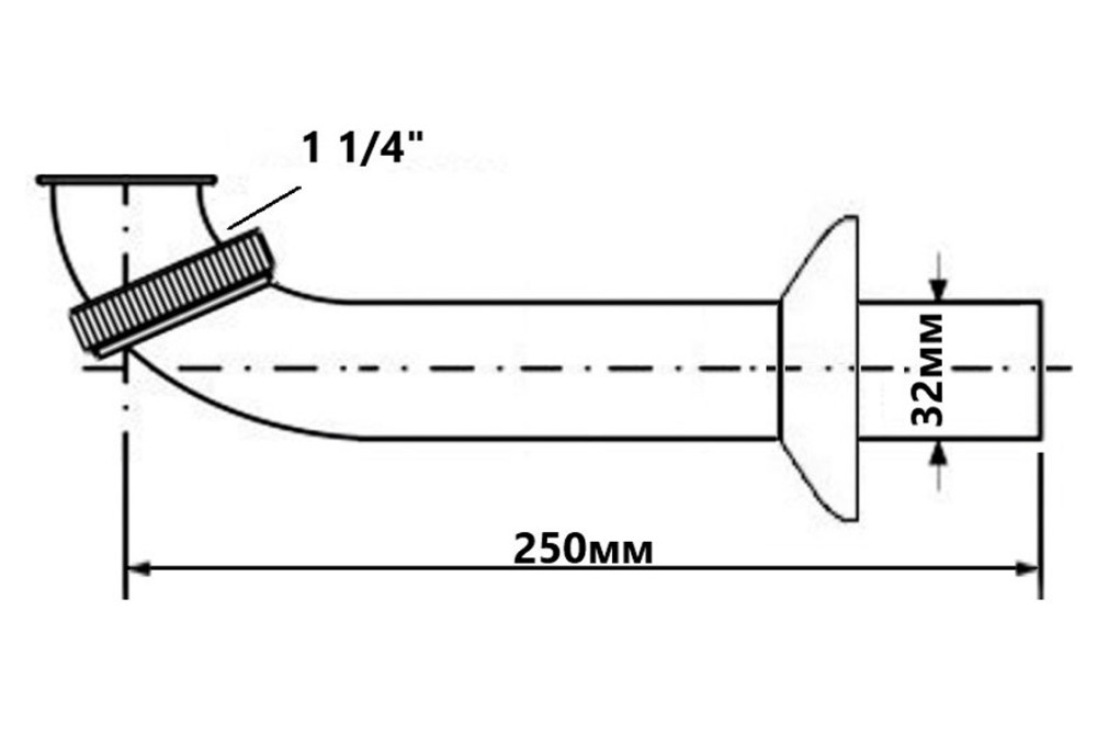 Труба для сифона для раковини McAlpine кутова 250 мм 1¼х32 латунь хром RS10