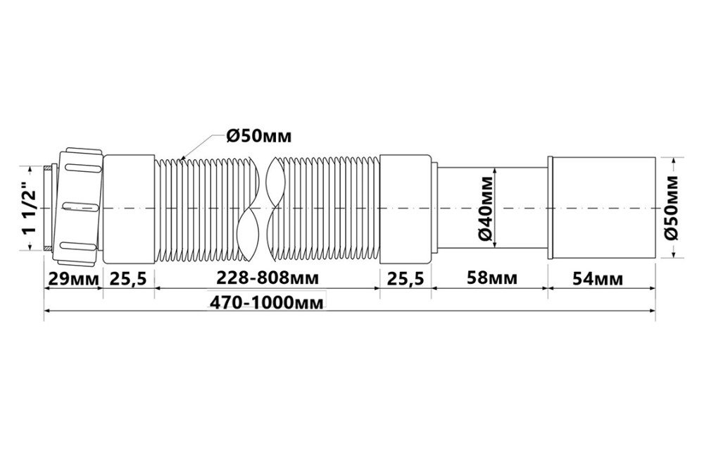 Подовжувач для кухонної мийки McAlpine 1 м 1½x40/50 мм поліпропілен білий