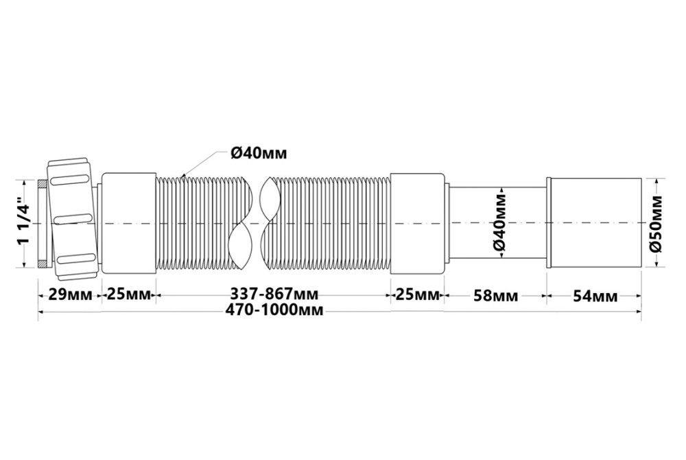 Подовжувач для раковини McAlpine 1¼x40/50 1 м поліпропілен білий