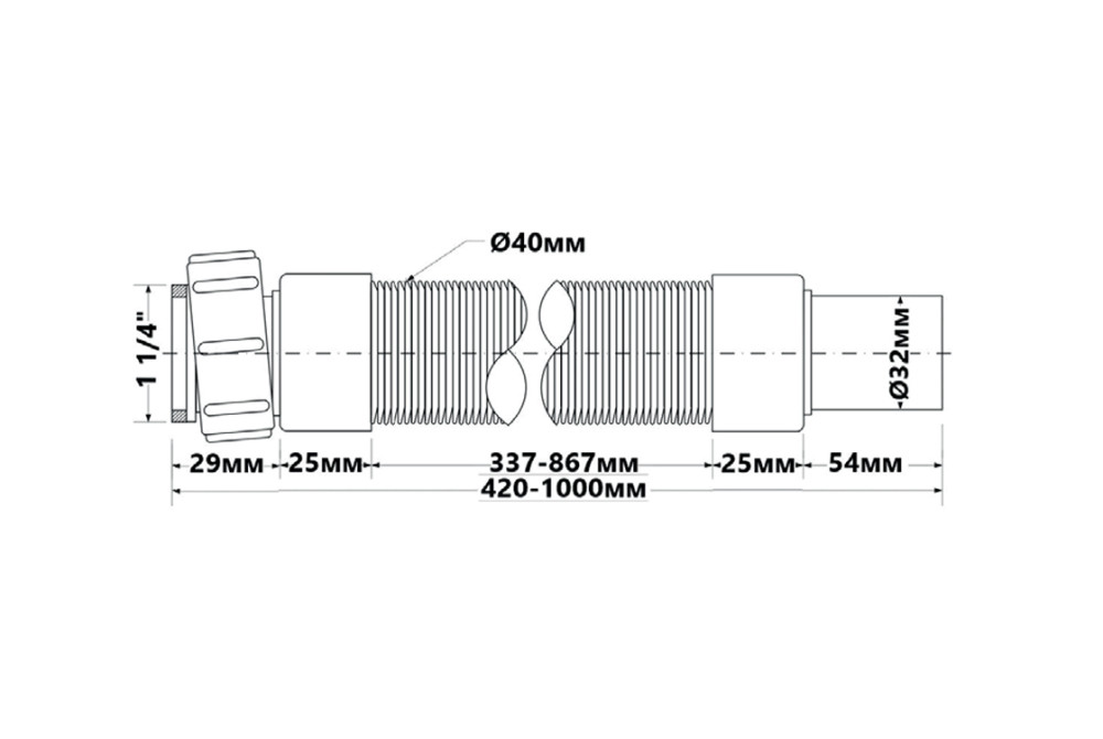 Труба розтяжна для раковини McAlpine 1 м 1¼х32 поліпропілен чорний FLX-CCB1-BL