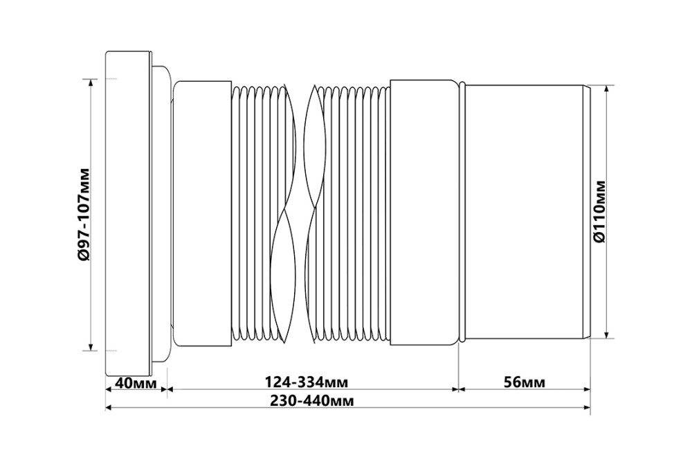 Труба розтяжна для унітазу McAlpine L-270-540 мм із ущільнювачем поліпропілен білий WC-F23P