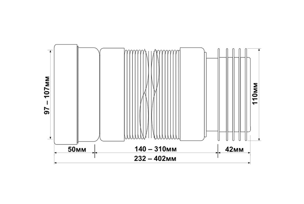 Подовжувач для унітазу McAlpine L-230-400 мм подовжений вхід поліпропілен білий