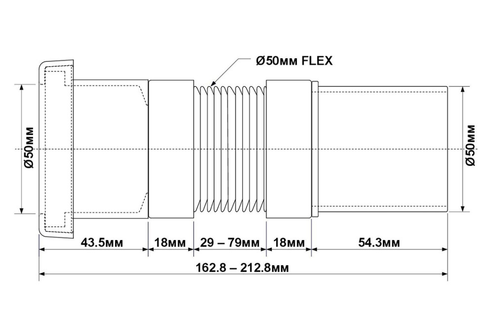 Труба розтяжна McAlpine L-162, 8-212, 8 мм 50х50 мм поліпропілен білий MFLEX-50PF