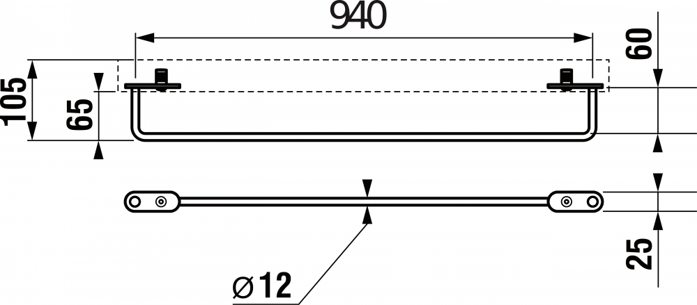 Тримач для рушників Jika Tigo фронтальний під раковину 100 см хром