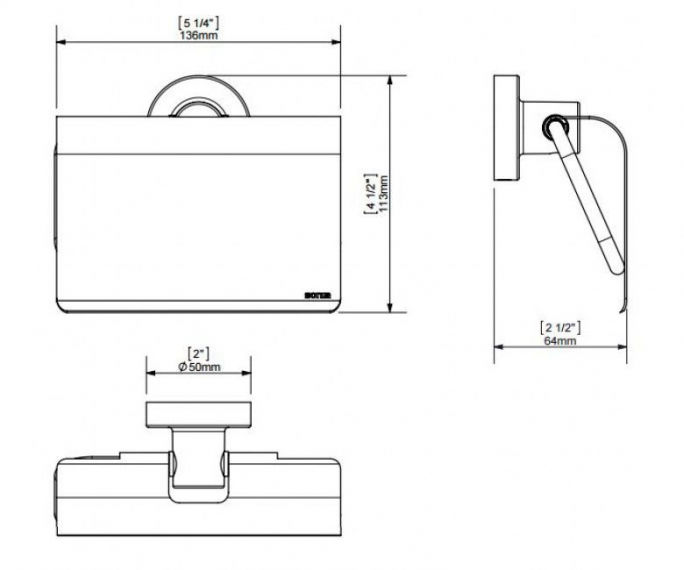 Дизайн лаконічний, що гарантує поєднання з різними інтер'єрними стилями. Являє собою конструкцію, яка кріпитися на стіну, є захисна кришка кольору «хром» з глянцевим відливом. Підходить для різних рулонів туалетного паперу. Аксесуар зручний у використанні, легко прокручується, а порожній рулон з легкістю знімається і замінюється новим.