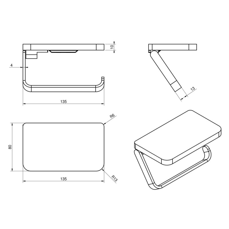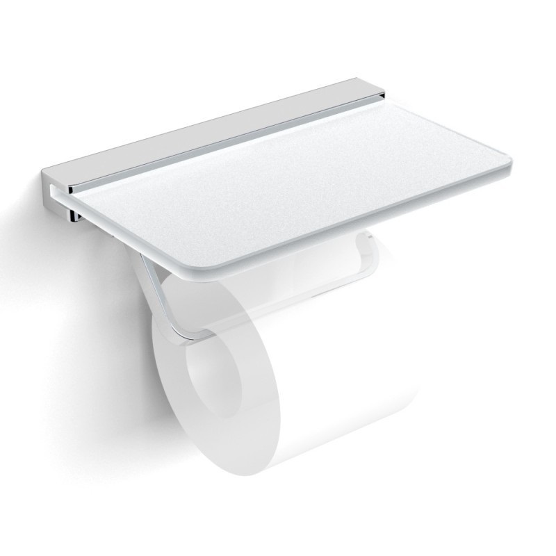 TEO Тримач паперу з поличкою матове скло, кріплення до стіни, хром