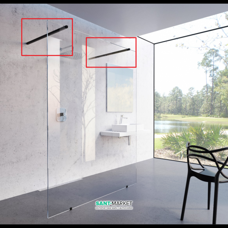 Щоб отримати весь комплект вироби Walk-In, вам необхідно придбати скляні нерухомі стінки Walk-In в одній упаковці, а також металеві тримачі длязабезпечення стійкості всієї душової кабіни в другій упаковці так званому W SET.