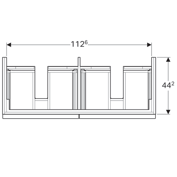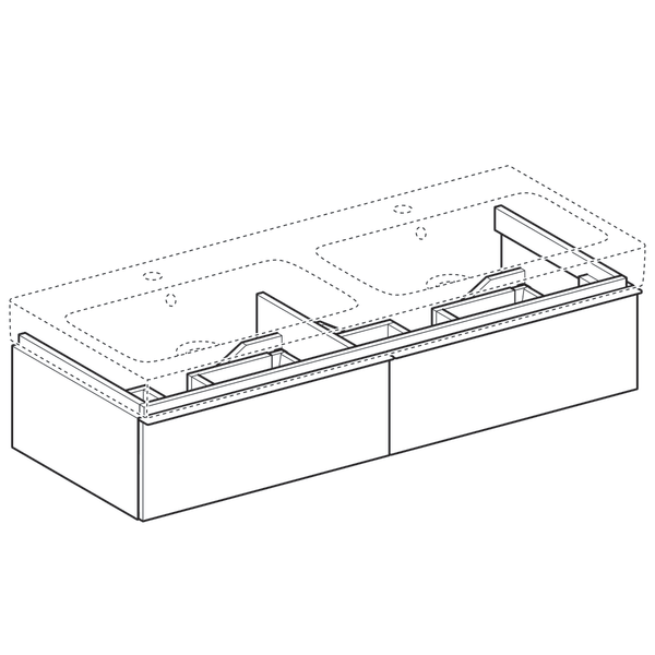 1) Тумба для подвійний раковини Geberit iCon з двома висувними ящиками ДСП платиновий / високоглянцевий покриття