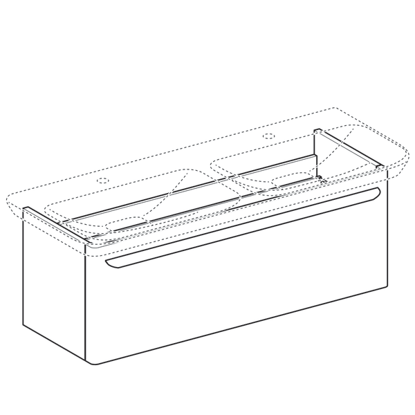 1) Тумба для подвійний раковини Geberit myDay з одним висувним ящиком ДСП білий / високоглянцевий покриття