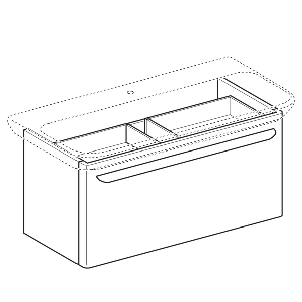 1) Тумба для раковини Geberit myDay з одним висувним ящиком ДСП / МДФ білий / високоглянцевий покриття