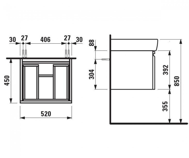 Тумба для раковини Laufen Pro А підвісна ДВП білий глянсовий H4830340954751