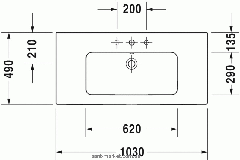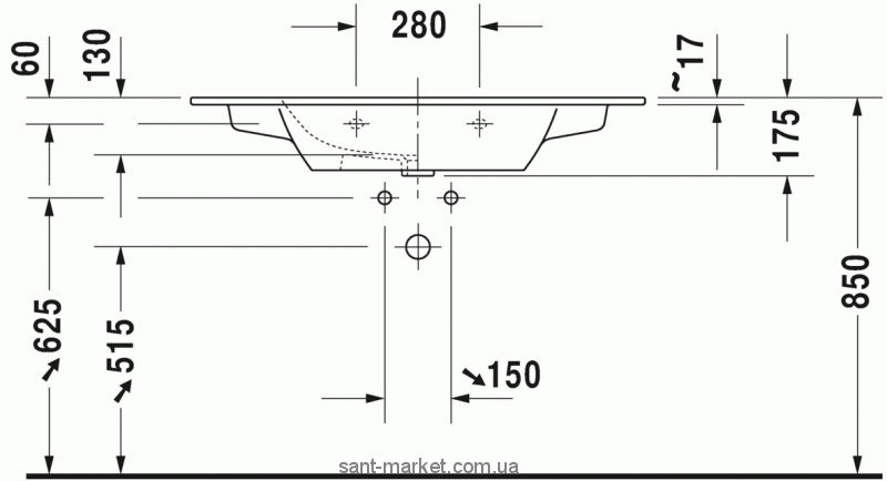 Умивальник для меблів з пере Івом, з площиною під змішувач, з 1 отвором під змішувач.