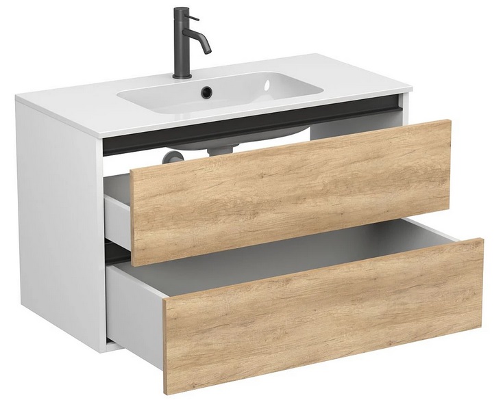 Тумба Miraggio Natura з раковиною Della 900 ДСП дуб небраска/білий мат 8814818