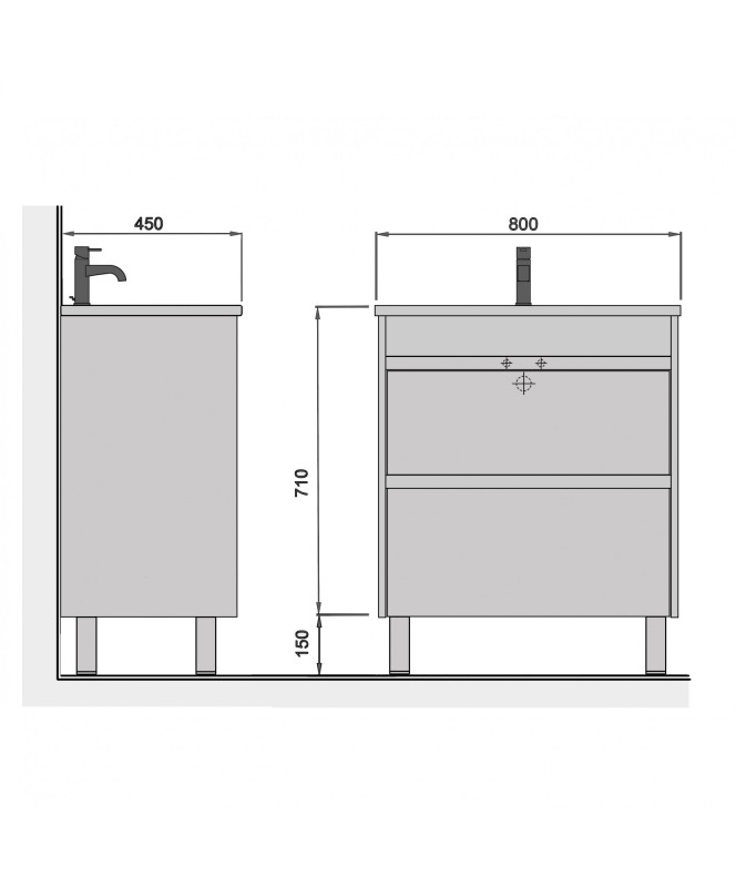 Тумба Мийдодир Polo Loft 80-U з раковиною Cosmo ДСП бетон/білий глянець 00-0008082