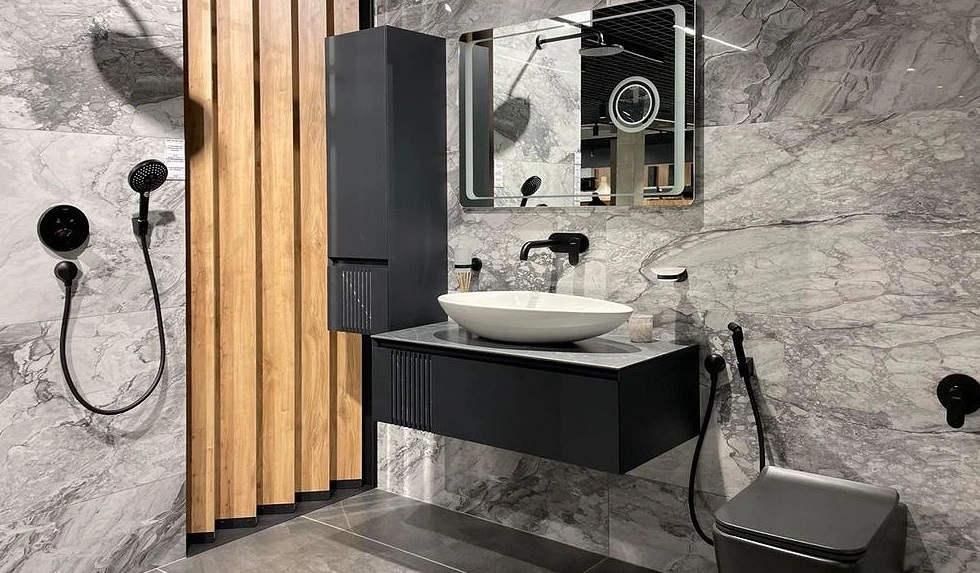 Тумба під раковину Аквародос Манхеттен 100 см із стільницею Namibia Black МДФ антрацит матовий АР000089857