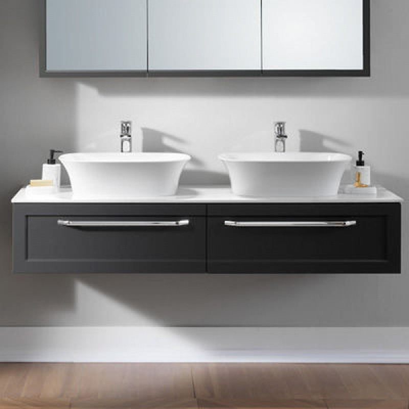 Тумба під раковину Kolpa San Blanche OB 150 підвісна 53х150х29.2 см МДФ/ДСП антрацит зі стільницею Kerrock білий