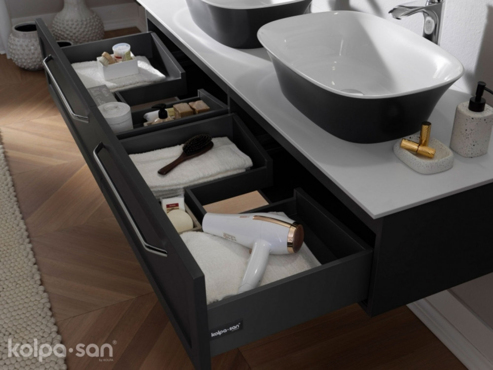 Тумба під мийку Kolpa San Blanche з ящиками та плитою Kerrock.