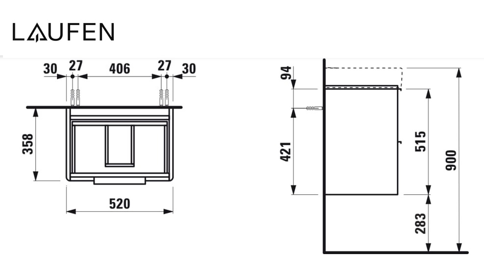 Тумба під раковину Laufen Base 52х35, 8 см МДФ білий матовий H4021521102601