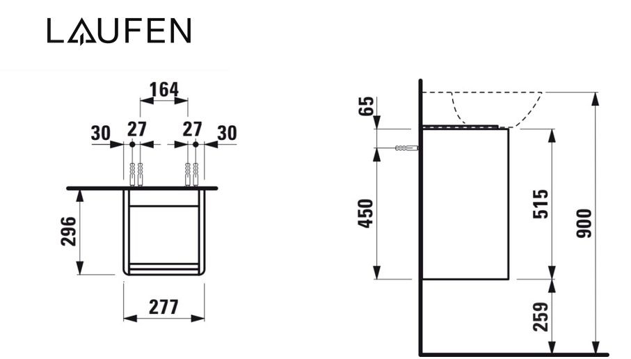 Тумба під раковину Laufen Base підвісна 27,7х29,6 см петлі праворуч ДСП світлий в'язок