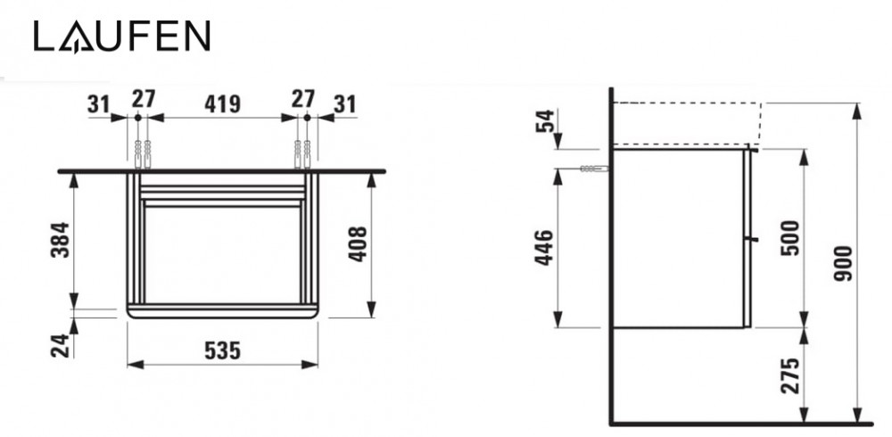 Тумба під раковину Laufen Space підвісна 53,5х40,8 см HPL темний в'яз H4101221601031