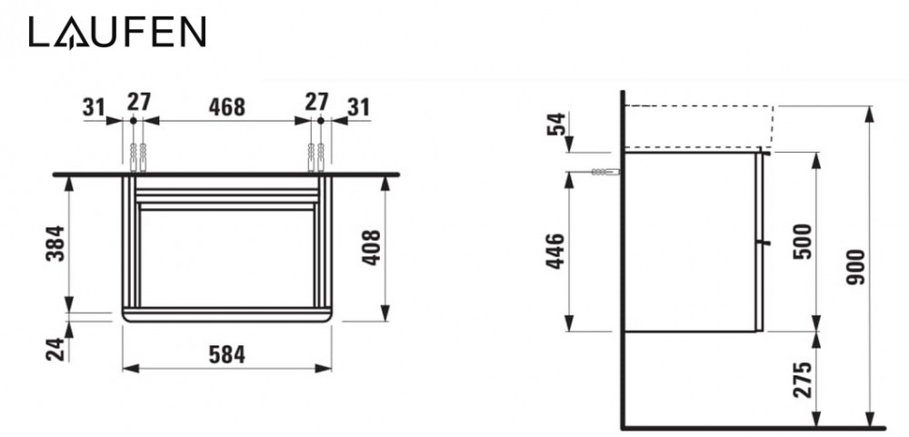 Тумба під раковину Laufen Space підвісна 58,4х40,8 см HPL темний в'яз H4101421601031